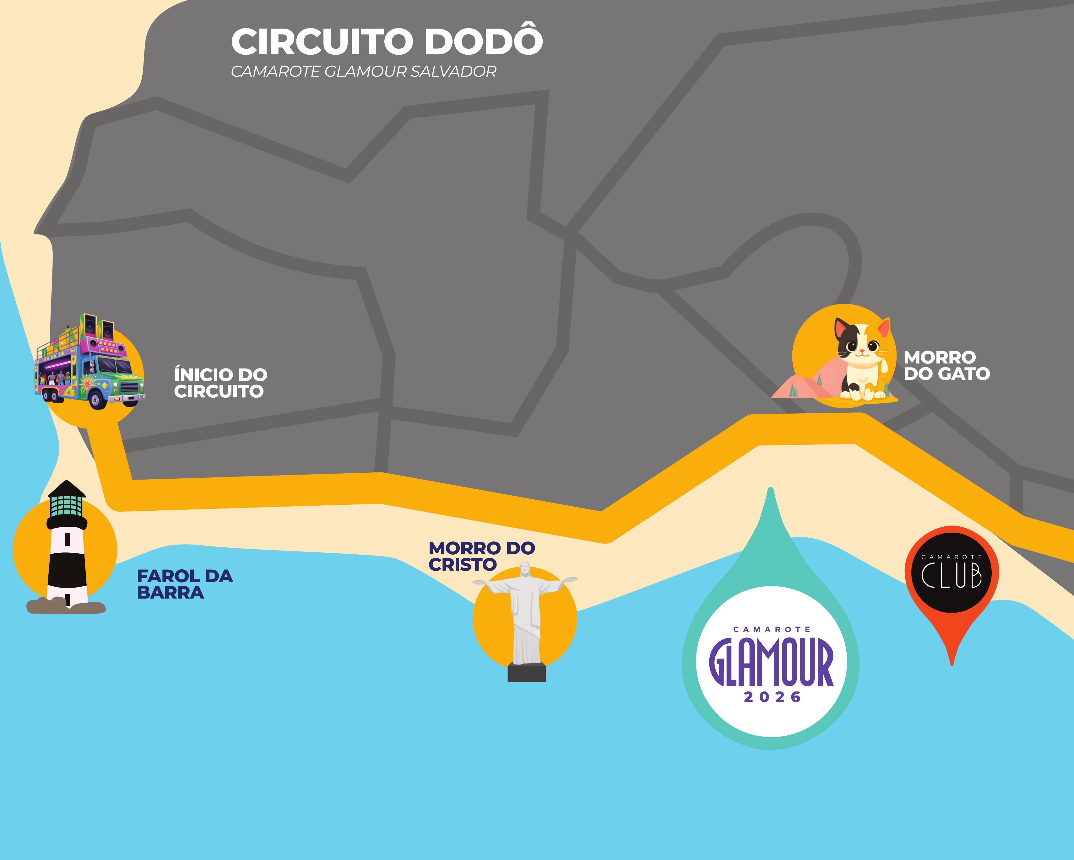 O Camarote Glamour está localizado no circuito Barra/Ondina, também conhecido como circuito Dodô, um dos mais famosos do Carnaval de Salvador. Estamos em um ponto estratégico, no Clube Espanhol, oferecendo uma vista incrível de toda a folia.