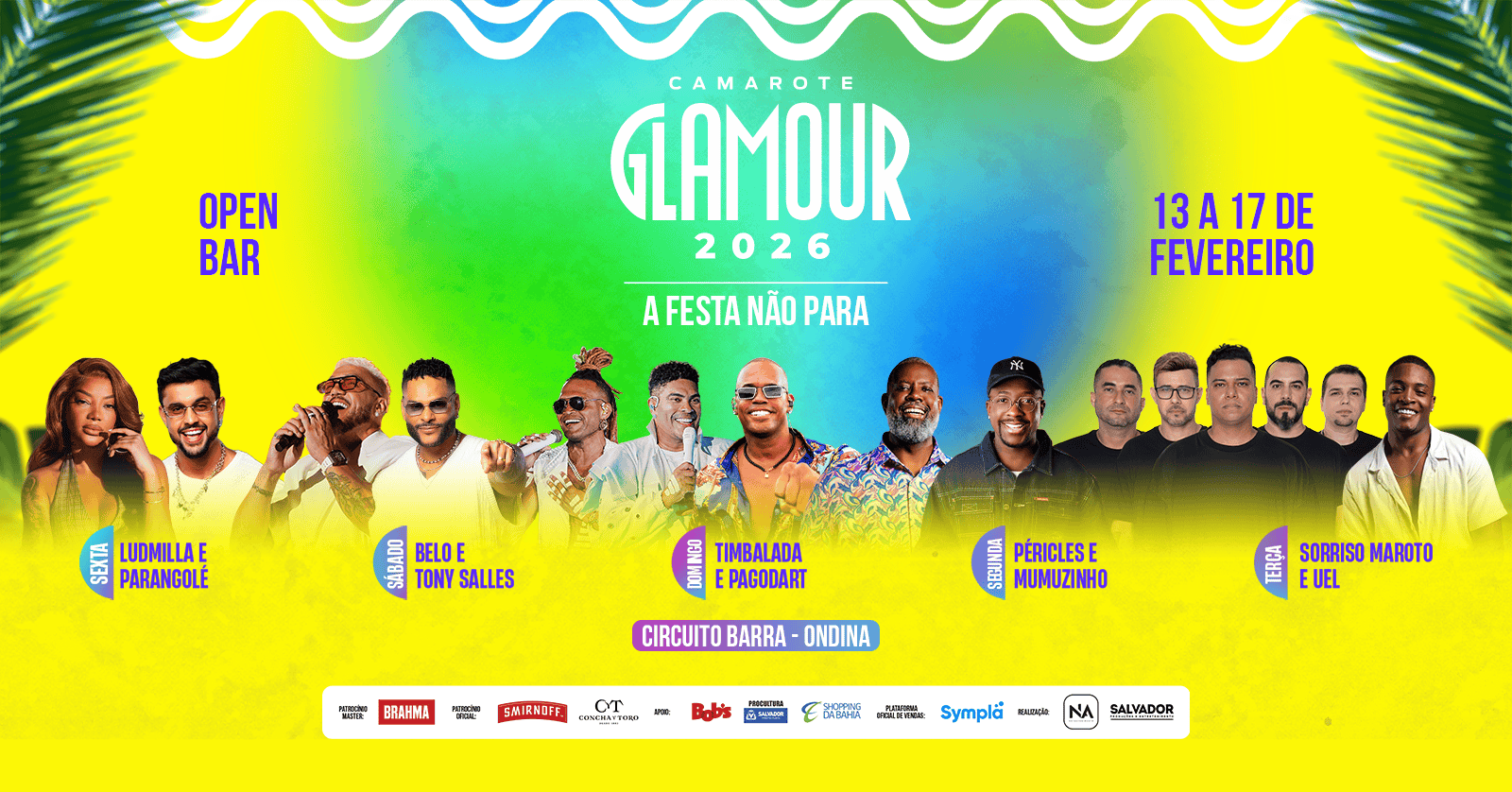 Misturando ritmos e estilos, o Glamour reúne grandes artistas e um público animado, transformando cada noite em uma experiência marcante no coração do Carnaval de Salvador.