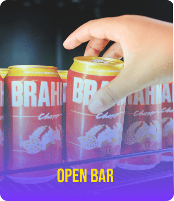 Serão cinco dias de festa, de sexta a terça, com open bar de água, refrigerante, cerveja, gin, vodka, vinho e whisky — tudo pensado para curtir cada momento com conforto e qualidade.